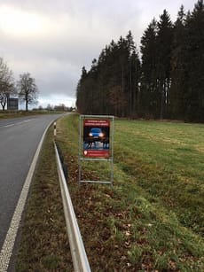 Ich musste erst das Straßenbauamt in Selb informieren, dann wurde ich weiter verwiesen nach Bayreuth in dieses Straßenbauamt. Wichtig war es, die Standorte im Vorfeld zu wissen, wohin man denkt, die Wildwarnplakate aufzustellen. Man kann dann im Vorfeld schon den Standort beschreiben, das musste ich auch per Mail vorab.