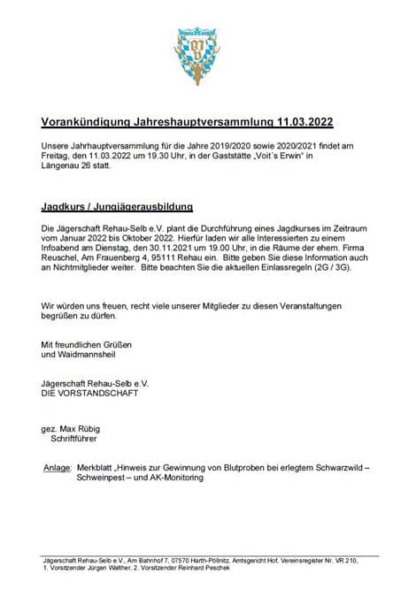Waidmannsheil und viel Erfolg in der Zukunft, bleibt gesund.