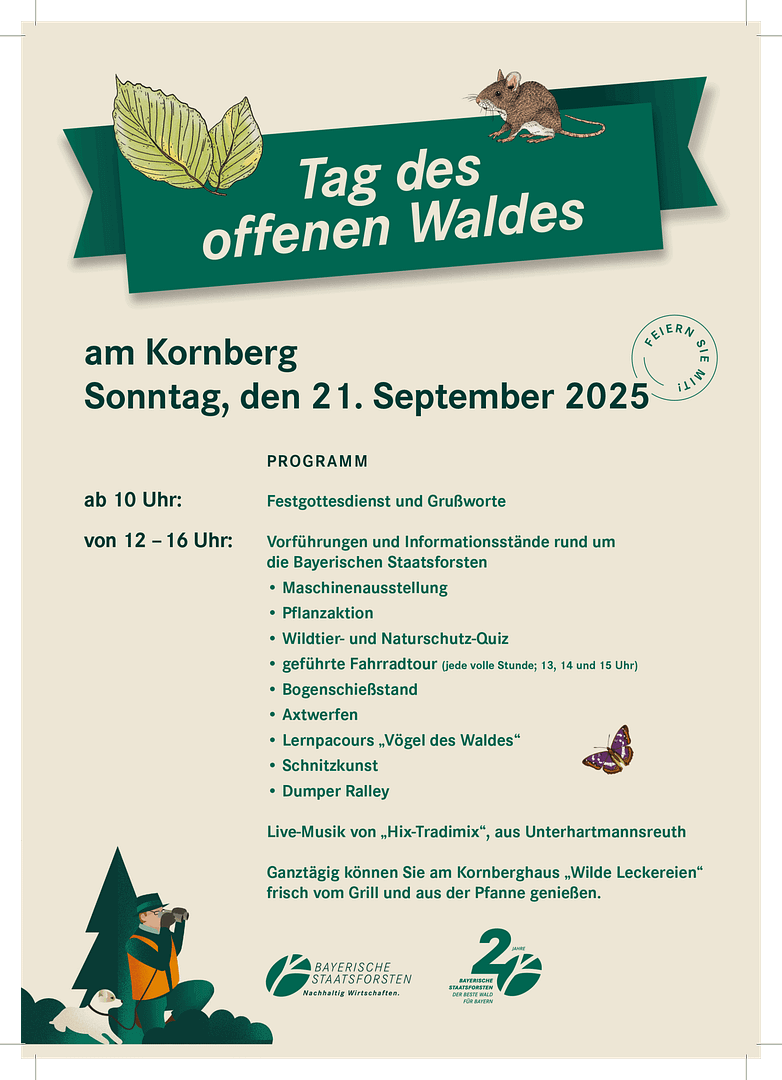 Freitag, 26. September 2025 · Jägerstammtisch im Gartenlokal Dürrenlohe (Google Maps Standort) - Tag des offenen Waldes