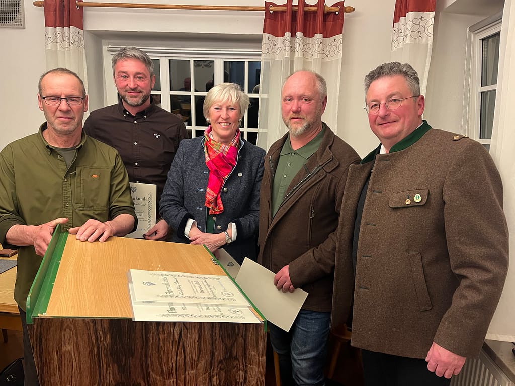 Ein besonderer Moment war die feierliche Verleihung der Jägerbriefe, bei der die Jungjäger offiziell in die Gemeinschaft aufgenommen wurden. Für den passenden musikalischen Rahmen sorgte die Bläsergruppe, die der Veranstaltung einen würdigen Einklang verlieh.